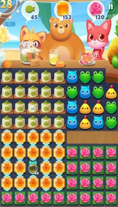 1、至少2个相同颜色糖果对齐时,双击即可消除。