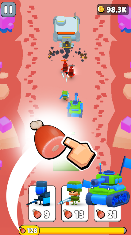 招募并训练不同类型的兵种,并能招募具有特殊技能的英雄单位。