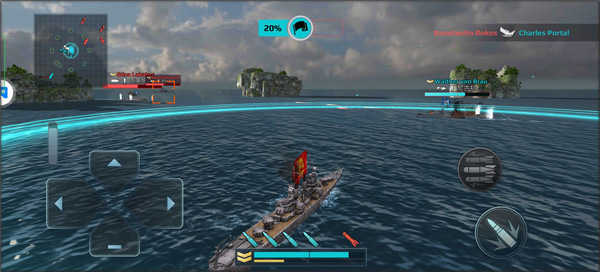 左侧虚拟摇杆用于控制航向与速度,微调角度比全速突进更利于规避敌方弹道,尤其在狭窄水道或岛屿群中尤为关键。