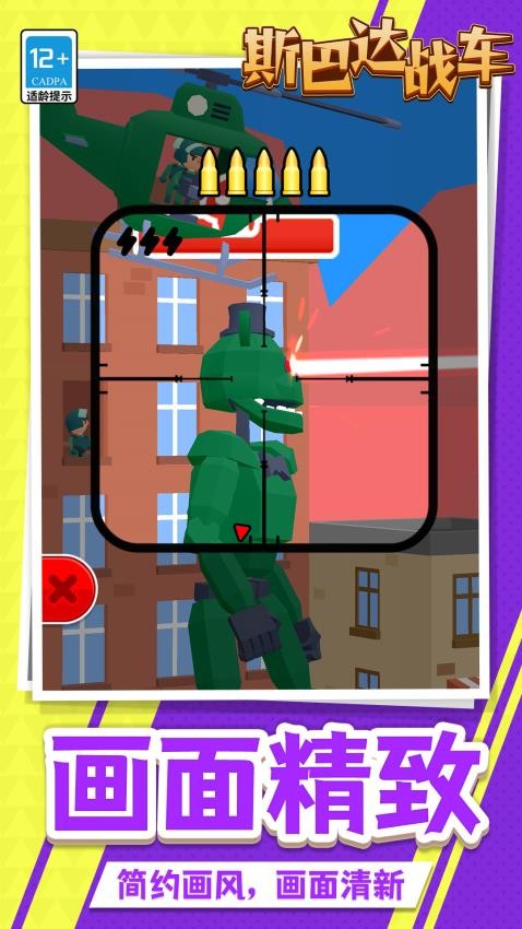 斯巴达战车是一款热血刺激的射击对战类游戏。游戏中玩家将置身于山坡位置进行伏击,在掩体之中控制坦克战车的炮台瞄准目标发射炮弹,迅速打击敌人基地完成破坏摧毁,全方位摧毁所有建筑设施即可满足任务目标领取奖励,可以全面升级炮台装备的火力强度和坦克性能,面对后续作战关卡与任务也能轻松完成,但要注意移动战车位置,随时都有可能被敌人发现隐藏位置。简单的触碰操作模式,滑动屏幕控制准星就能保证基本命中率,还能打开瞄准镜进行精准的微调,这会带来极其畅快的战斗体验与乐趣。