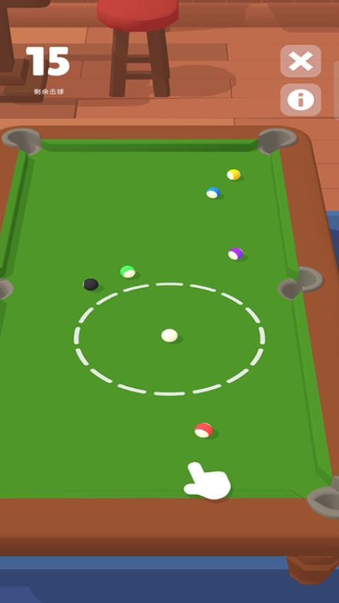 精准台球是一款十分简单的台球闯关游戏。游戏采用经典的规则机制和玩法内容打造,开局就能跟随教程学习基本操作技巧和界面信息,所有基础操作与界面图标都会存在详细介绍,查看文字信息就能迅速上手挑战,还会出现特殊的箭头提示指引,只需要跟随引导将花色彩球击入袋中就能获得分数,保持领先并最终绝杀就能取得胜利完成挑战,可玩性非常强。众多关卡持续推进挑战,随着关卡深入会出现越来越高的难度,想要获胜必须专注控制球杆进行操作,稍不注意就会出现失败的情况,喜欢的朋友快来下载体验吧。