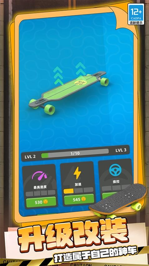 逐步提升滑板等级,可以加强它的功能,并且还能得到加速效果。