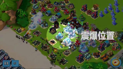 远程干预链:伊娃斯巴克在安全距离释放遥控技能,精准操控震爆火箭炮与重机枪等本体周边建筑,实现对核心区域的间接打击。