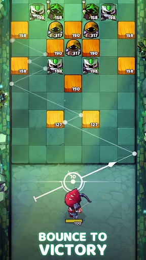 3、进入关卡后按住屏幕可以选择不同的角度发射弹球攻击敌人,弹球命中敌人会造成伤害。
