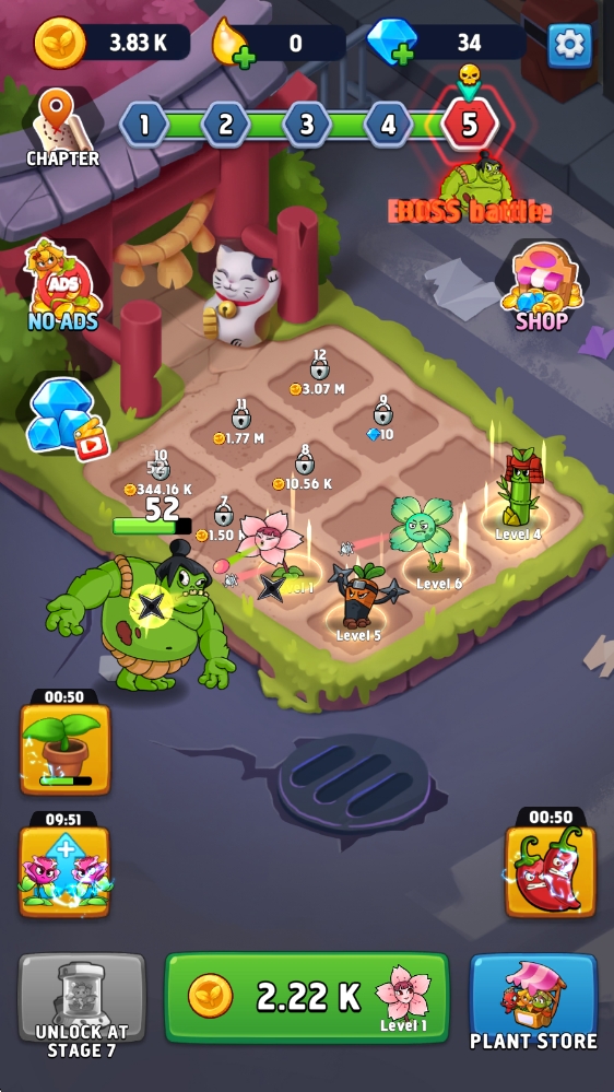 为了击退贪婪的僵尸,你可以通过合并来组建强大的植物与花朵小队。解锁新的作物,别忘了在僵尸来敲门之前提升植物战力,并缩短生长时间!