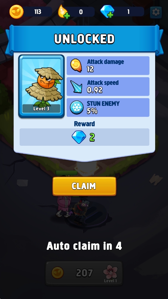 2、相同等级的植物即可进行合成,得到更高一级的植物。