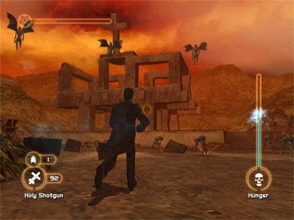 神圣霰弹枪(Holy Shotgun):在找齐三部分后才能组合,可以同时攻击站在一起的多个敌人,后期主要武器,对所有恶魔尤其是混种非常有效。