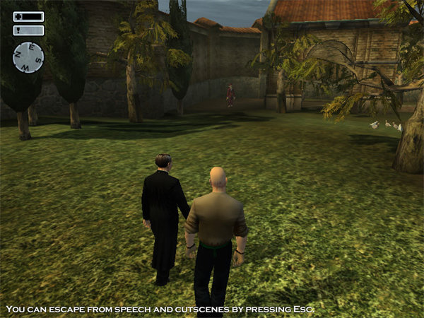 难度:一般一开始你在一个山坡上,按照正规的杀手作风,你应该把一个送画的邮差干掉再装成他混进去。但是笔者玩了几次,都没有用这种方法,因为太不实际了,你又不可能带枪进去(保卫要搜身),进了去也很难下手,而且保卫看多你几眼就看不顺眼拔出把9毫米对你一顿痛射,因此建议光明正大的杀进去是最明智的选择。首先从山上下来,使用9毫米消音手枪,从第一个门进去,一开门就会见到一个保卫,什么都不用说,把他一枪爆头,不要让他有开枪的机会,这时敌人还不会发现你,之后进入前方的车房,里面会发现一把R93式狙击步枪,拿起他,走回你一开始出现的那个山坡,你会发现阳台上有个在打高尔夫球的傻B胖子,什么都不说,拿起狙击步枪,瞄准他的头,然后就还有两颗子弹,顺便找些视野能出现的人,把他们狙杀,注意要打上半身,下半身一枪死不去。然后拿起.45杀手专用双枪冲进去,见人就杀。这枪威力很大,能把人打得飞起来,不错。一路屠杀,到房子的另一边的庭院,你会看到两个胖子保镖,一个穿黄色衣服,一个穿吊戴裤,都拿着沙漠之鹰手枪,威力很大的,要注意了,干掉那两个人,可以从其中一个人身上搜到一把钥匙,然后到二楼找到那个被你狙死的那个胖子。从他身上又搜出钥匙(他们两人身上一个是汽车钥匙一个是地下室钥匙,我忘了究竟谁是谁,不过没关系,都一样的),然后在房子里到处找到去地下室的路,注意可能会遇到保卫,到了地下室进入地下室的房间,发现神父没在这里,于是回到车棚,开车走人,任务结束。