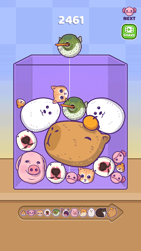 3、水豚模式:你的任务是合并可爱的水豚,创造出最可爱、最独特的水豚。发现独特的组合,如蜜蜂水豚、甜甜圈水豚、酷酷的水豚、水豚与乌龟、水豚和鹈鹕、水豚和鳄鱼。