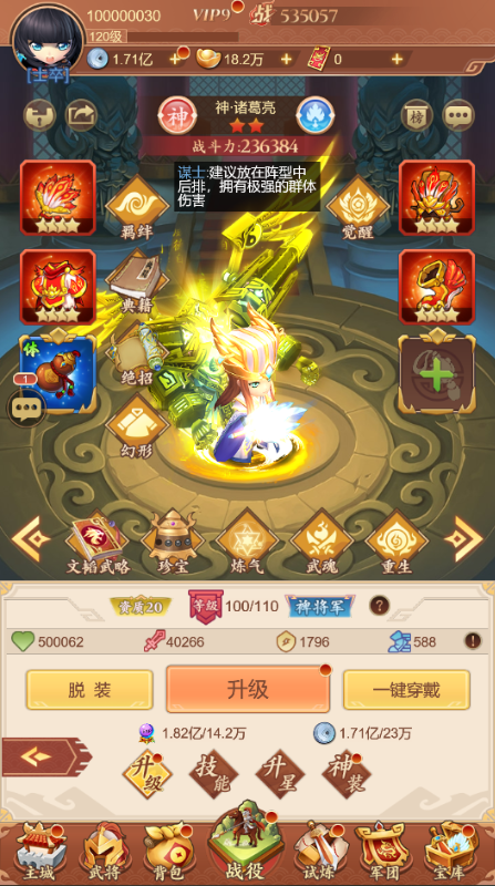 银两:用于升级武将、神兵、商店购买等