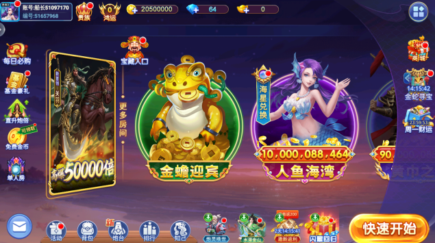 2、技能组合:玩家可以解锁并使用多种捕鱼技能,通过不同的技能组合,实现更高效、更有趣的捕鱼体验。