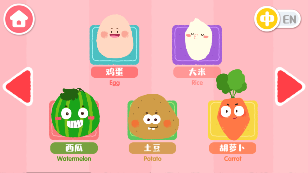 卡通食物形象,萌萌哒的声效,既增添了趣味性又给宝宝更加直观的认知。