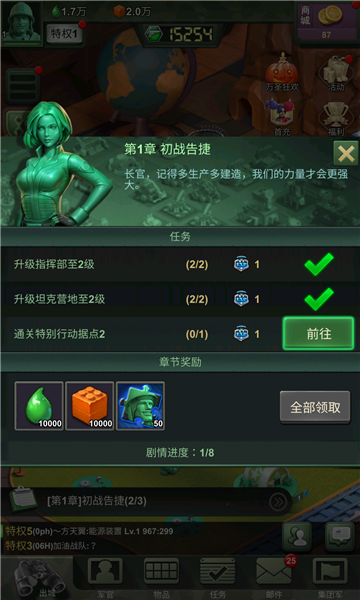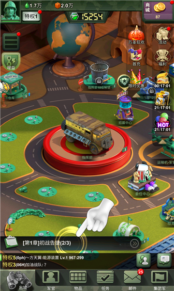 3.总有你会喜欢。专属的荣耀铭牌、帅气的集团军旗帜、百变的指挥部外观,丰富的游戏感观不容错过。