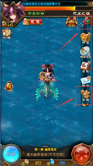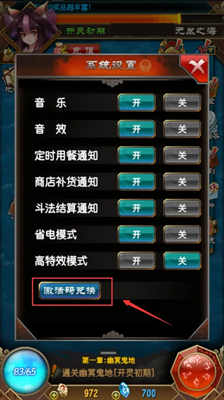 1、首先打开魔天记手游,进入游戏后点击左上方卷轴打开系统设置;