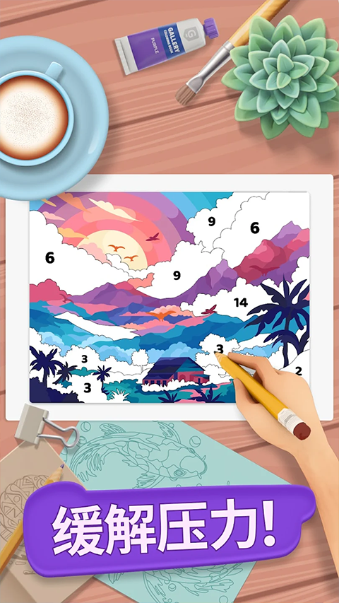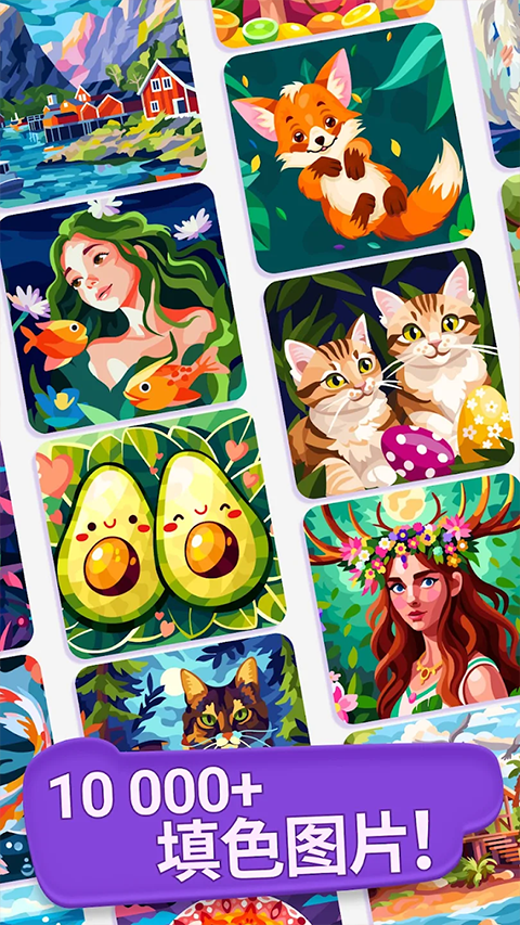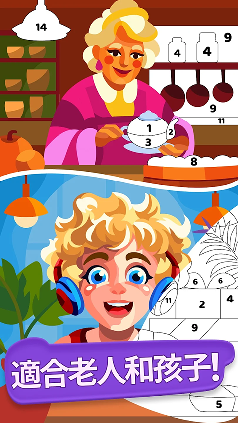画廊涂色本和装饰手游是一款非常休闲且好玩的涂色模拟装修游戏,英文名为Gallery,采用精美的卡通画风,完整且严谨的剧情故事,休闲丰富的玩法,给玩家带来了舒适的游戏体验。在本作中,玩家需要完成各种各种涂色关卡来收集海量的金币,金币可以兑换各种家居装饰,玩家需要收集丰富的金币,将自己破旧脏乱的宅邸翻修和装饰成一个精美的豪宅。游戏的填色玩法非常的简单,玩家只需要根据数字进行填色,让一幅幅美妙的图案在自己的手中慢慢形成即可。画廊涂色本和装饰游戏为玩家提供了丰富的道具,帮助玩家填色更加顺利,比如炸弹可以瞬间给一片区域填色,放大镜可以帮助迅速找到某个颜色的位置等等,感兴趣的玩家赶紧来本站下载体验吧。