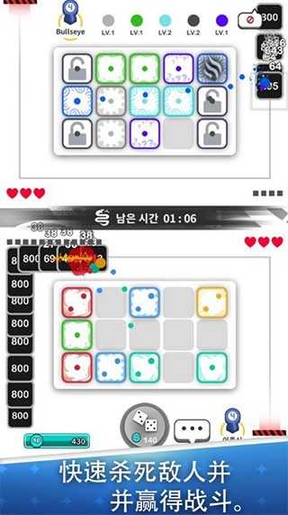 淘汰机制别具一格,需在同一轮中掷出相同点数组合才能触发清除效果,考验玩家对概率与时机的双重把握。
