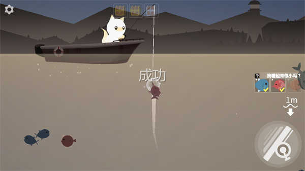 4、成功钓到鱼后,再次点击原先的投掷”按钮,收回鱼线,得到鱼类。