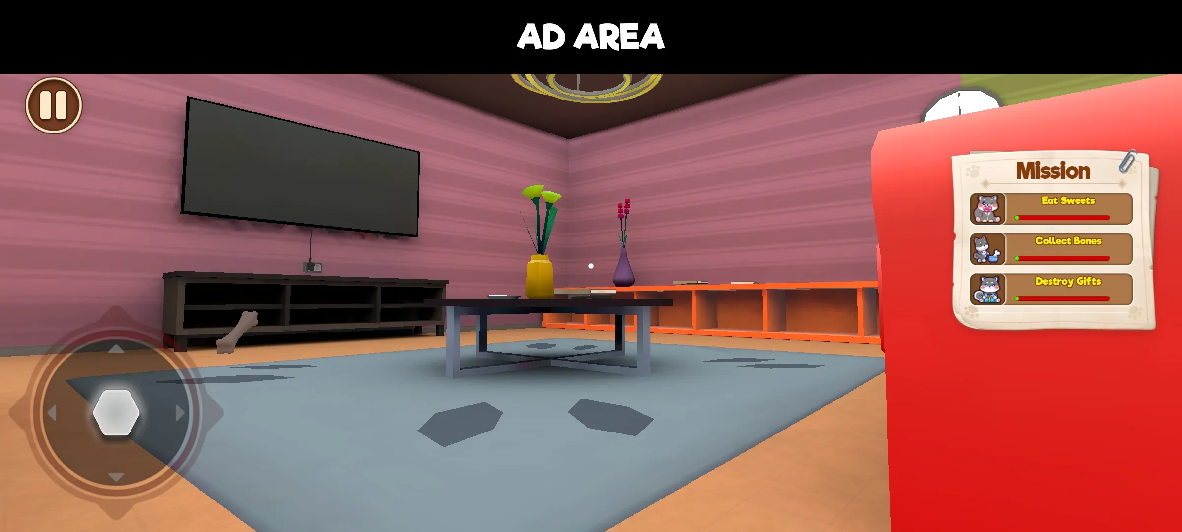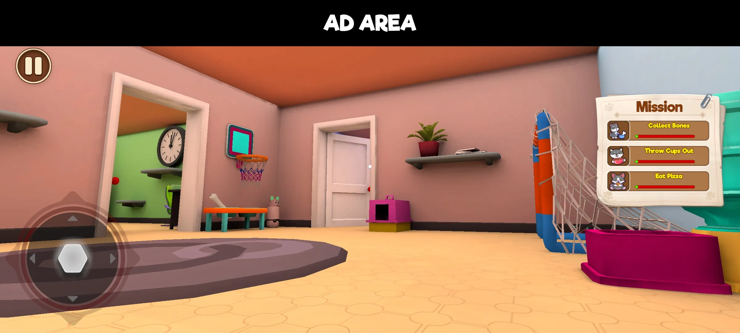 我是宠物狗是一款让你从狗狗视角体验世界的游戏,进入这个充满趣味的世界,你将扮演一只可爱的宠物狗,在熟悉的家庭环境中展开冒险,探索房间的每个角落,完成各种新奇的任务,寻找藏起来的骨头,或者偷偷品尝桌上的美食,每一次成功的探索都能获得金币奖励,这些金币可以用来解锁更多不同品种的狗狗伙伴,每只狗狗都拥有独特的奔跑速度和体型,为你带来截然不同的探索感受。游戏让你沉浸式地体验宠物狗的日常生活,感受那份无拘无束的快乐。