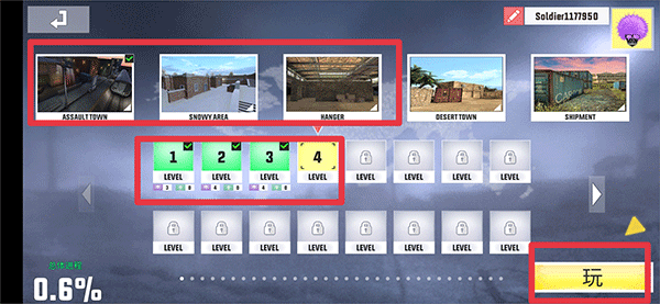 3、接着就是选择解锁的关卡和地图,选择完成后点击右下角的玩