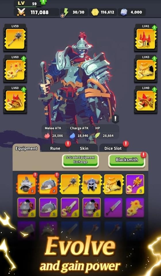 2、不同的技能有不一样的能力效果,自由组合搭配可以构筑不同的流派来闯关。