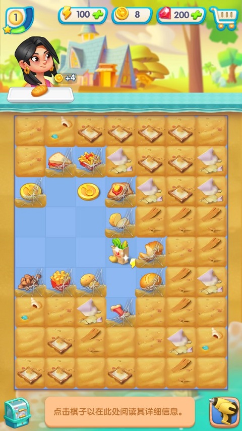 4、在棋盘的左上角有顾客需要的订单,通过合并探索,直至合并到顾客需要的订单,点击“完成”即可交付。