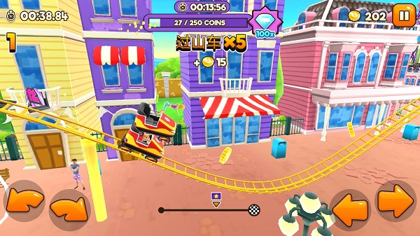 Thrill Rush是大受欢迎赛车游戏Uphill Rush的续作,本作的中文名也叫主题公园过山车游戏,对于紧张又刺激的游乐项目过山车而言,不知还有多少玩家未曾体验,即便过去因为你的种种原因没能参与,现在通过这款游戏一并解决。游戏中共有2个超棒的主题公园,每个公园都有海量关卡可供玩家选择,除了这些过山车模型超过40种、有趣的服装约有25套,另外你也可以挑选自己喜欢的角色来进行过山车项目的挑战。惊险刺激的过山车娱乐项目,妙趣横生的过山车模型,以及众多的皮肤体验,皆有非常多的选择性,并且在主题公园过山车游戏中玩家还能通过加速、减速的手动控制来完成一些你从未体验过的高难度动作,每当你遭遇斜坡冲出轨道,通过左侧的平衡控制来模拟更刺激的过山车项目体验!此外,该游戏完全免费,即便是在无网络的状态下依然能够感受着无与伦比的过山车主题冒险,如果你觉得游戏关卡难度并不能满足你的需求,你甚至可以发挥你无穷的想象,使用关卡编辑器创建出属于你自己的关卡挑战。