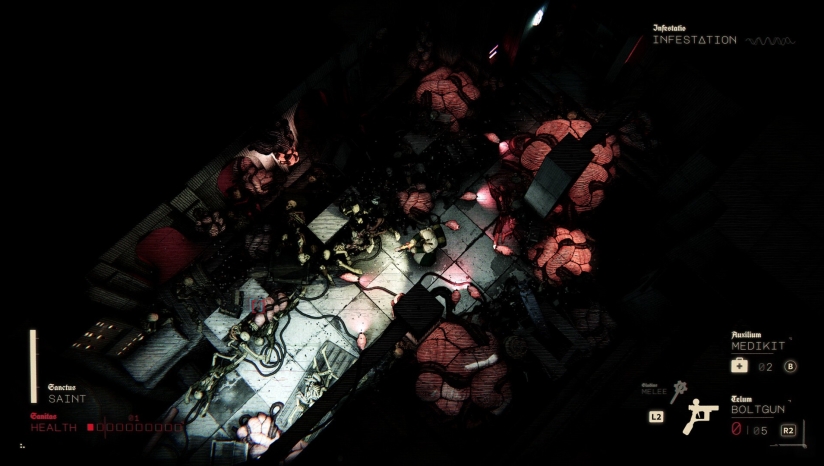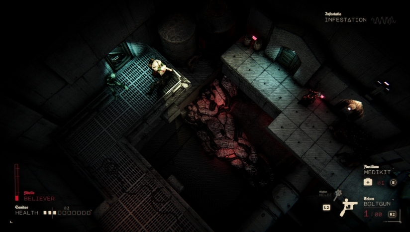 本作巧妙融合了Roguelite机制与生存恐怖元素,创造出高重复可玩性的体验。游戏世界采用程序生成技术,每次冒险都会产生全新的走廊结构和怪物分布,确保没有两次完全相同的游戏历程。玩家需要在废弃飞船和巨大太空教堂中探索,搜集生存必需资源,制造新的武器和装备以对抗机械瘟疫怪物。游戏包含独特的“圣洁”机制,根据玩家的决策会解锁“圣洁或诅咒物品”。玩家需要管理角色的神圣性,承受强大圣痕以提升各项能力,在前往下一个地点前,必须制作出一套完整工具,并拖住生物机械瘟疫怪物,迫使它们返回船上。这种资源管理、制作与战术决策的结合,构成了游戏玩法的核心循环。