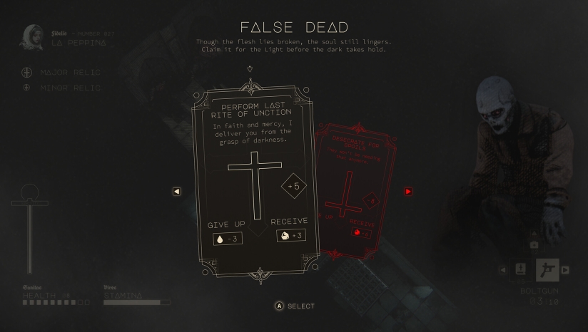 《Void Martyrs》最突出的特色是其独特的主题融合——将宗教元素与科幻恐怖相结合,创造出“太空修女对战机械僵尸”的新颖设定。游戏中的肉鸽元素为玩家提供了丰富的可玩性,随机生成的环境确保每次挑战都充满未知。另一个亮点是游戏的道德抉择系统,玩家在游戏过程中的决策不仅会影响获取的物品类型(圣洁或诅咒物品),还会影响角色能力的发展方向。这种设计增加了游戏的策略深度,鼓励玩家尝试不同的游戏风格。