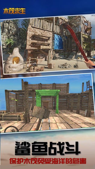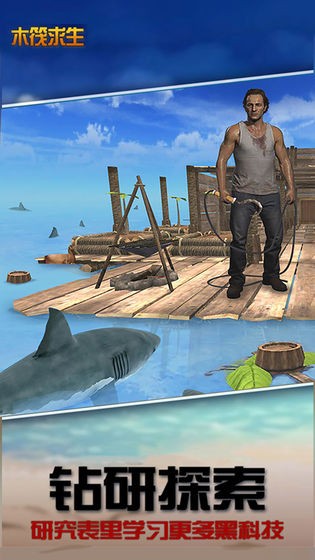 玩家需要在木筏上收集资源,扩建生存空间,抵御鲨鱼和其他威胁。