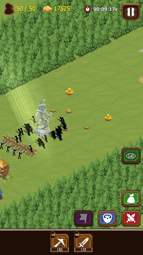 2、强大的武器库可增强你的火柴人军队,例如矿工的强力工具、剑客不屈的愤怒、治疗者的恢复能力、雨箭的精准穿透、长矛的疯狂攻击、金矛的强大力量、雕像炮塔的坚不可摧防守,还有强大的狮鹫。