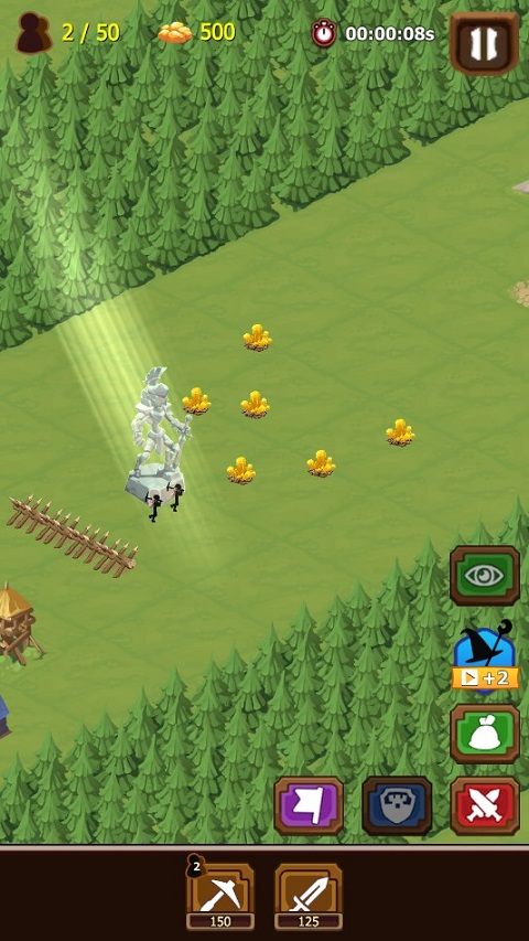 默认情况下,游戏内会提供两名火柴人劳工,劳工会自动前往金矿采矿。