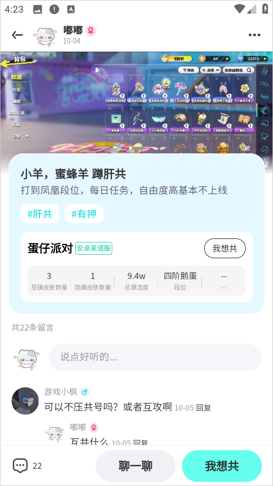 蹲共、互共、蹲号:只需发布简单需求,即可为您精准匹配理想的共号伙伴,轻松找到志同道合的搭子。