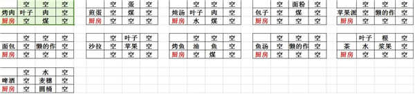 食物制作体系完整公开,从基础烤肉、发酵面包到增益药膳和耐久干粮,满足不同阶段的营养与状态需求。
