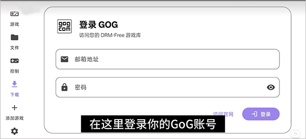 2、然后登录你的GOG账号