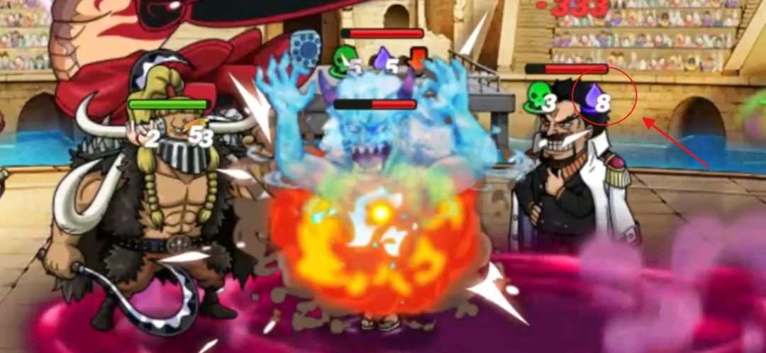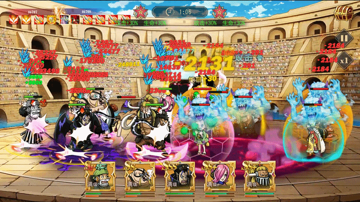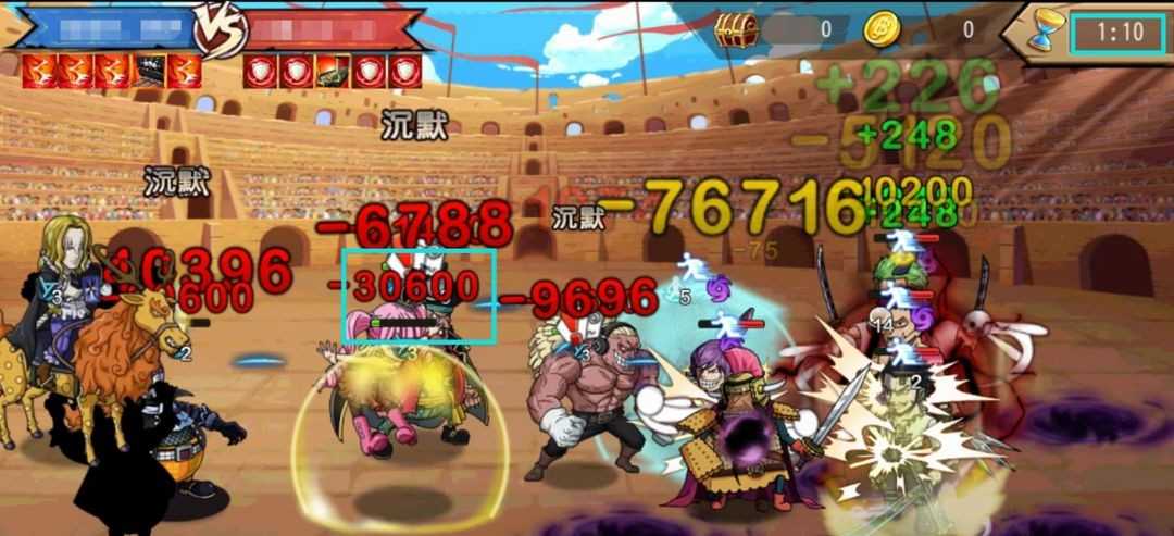 如图所示,即便是拥有百分比掉血保护的路飞太郎,也在毒龙轮番冲击下迅速溃败。