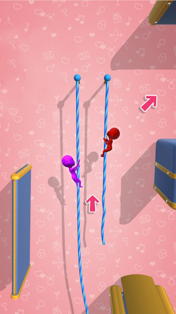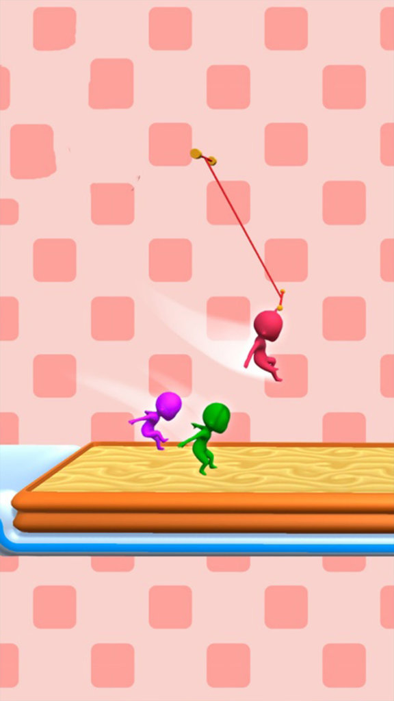 赛道会以火柴人为中心自动旋转推进,你需要做的就是在恰当的时机做出正确的跳跃或下蹲动作。