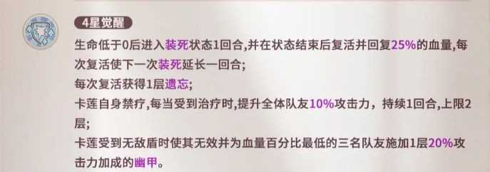 三星觉醒暂未激活实际战力,但为未来终末裔角色拓展预留接口,同时赋予卡莲高于常人的基础属性成长,体现其在世界观中的特殊地位。