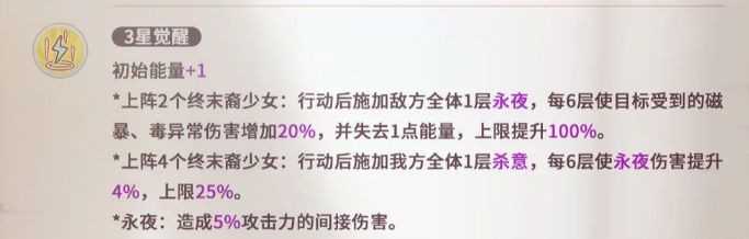 五星觉醒的核心是【储魂罐】系统。战斗初始即获得两回合免疫减能与全队回能,随后通过进化与装死不断叠层。一层提供免死盾,二层赋予回能与技能增伤,三层双目标覆盖,四层则具备扭转战局的颠覆性力量。它的强大不在于瞬发,而在于可预期的成长轨迹只要队伍存续足够久,终将迎来那个翻盘时刻。