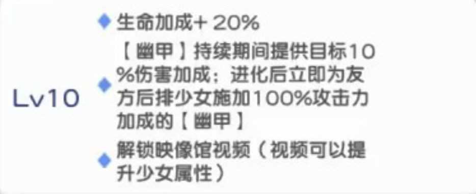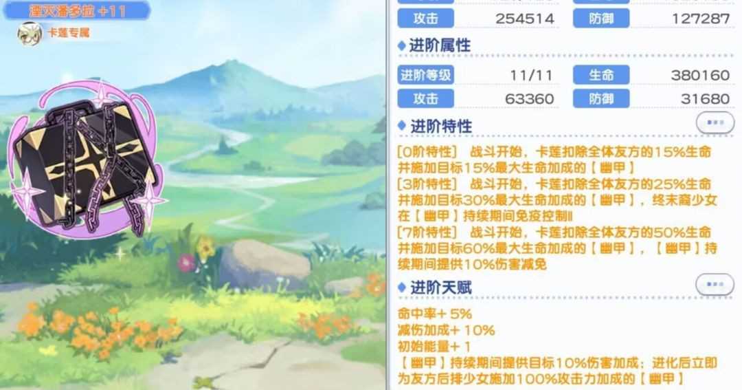 心之所向一的第二重效果,是进化后为后排全员附加等同于自身攻击力100%的【幽甲】。虽卡莲攻击力未必顶尖,但覆盖范围广、启动门槛低,配合印记与站位策略,足以构筑起一道隐形防线。