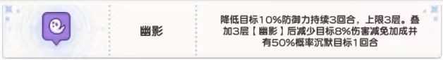 【幽影】效果随层数递进:每层降低10%防御,三叠后额外削减8%伤害减免,并赋予50%概率沉默。这个沉默不因攻击人数增多而稀释,哪怕面对六人阵列,依旧保持原始判定权重。