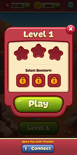 1、打开卡通爆炸游戏最新版游戏,选择需要挑战的关卡等级,点击【PLAY】开始游戏,