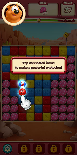 卡通爆炸还拥有全新的剧情发展内容,玩家进入游戏后,将与库柏猫、沃利狼、布鲁诺熊一同在卡通世界展开冒险,只需要把颜色一样的组合在一起就可以进行消除,还能通过爆炸立方体来完成闯关并解锁新剧情。另外,玩家也不用担心资源不够,除了通关获得奖励,每天登录游戏也能获得资源,游戏中还有各种有趣的玩法等待玩家去探索,欢迎感兴趣的小伙伴下载体验。