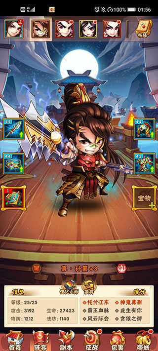 吴国后期阵容核心逻辑清晰:主将+主角双核驱动,其余武将专注提供高价值光环与稳定合击。针对吴国基础输出偏低特性,优先选择具备「残暴」或「高额攻击加成」的红将作为光环核心——孙坚(本国缘分加成显著)、关羽(同资源下攻击面板顶尖)、吕布(全队爆发引擎)构成黄金铁三角。