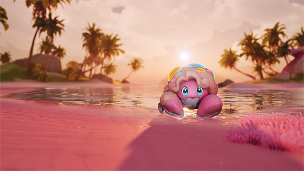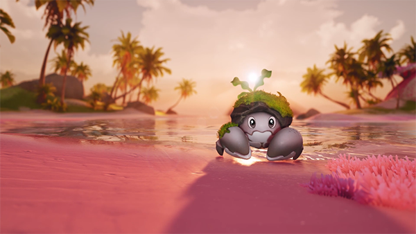 花芽蟹——忠贞浪漫的滩涂诗人一生只择一偶,成双行动;头顶蟹心草随幸福指数起伏摇曳——饱满翠绿是热恋,浅粉微颤是小别重逢。属性:土、草普通形态