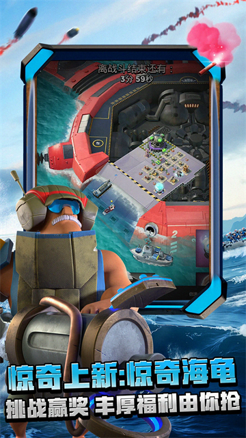 2、你可以与全球千万玩家同时在线,攻打NPC岛屿和不断入侵的其它玩家,获得丰厚的战利品。