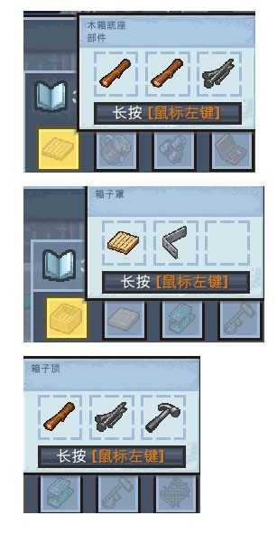 收集三段木料、两枚钉子、一把铁锤、一个金属支架及真实邮递地址标签。将木料与钉子组装成箱体结构,再将支架与地址标签嵌入指定位置,形成伪装快递箱。