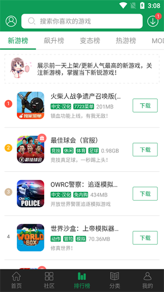 提供最新的游戏热门程度和下载量。通过新游榜、热游榜等分类,玩家可以轻松找到当下最火热的游戏,查看其排名和下载资源。这里的内容不断更新,帮助玩家第一时间掌握游戏趋势。