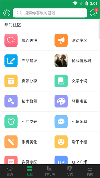 社区板块提供了多个互动功能,玩家可以通过这个区域参与各种游戏讨论、活动、产品建议和资源分享等。用户不仅可以关注自己喜欢的内容,还能参与技术教程、游戏聊天、生活娱乐等多个话题,丰富社交体验。