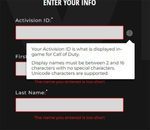 3、自定义2-16位的动视ID并输入姓与名(需要英文格式,不支持中文)