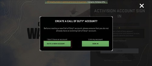 1、COD战区注册入口:游戏主界面-点击sign up-点击create a new account